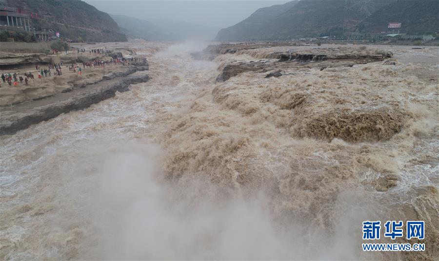 這是10月17日無(wú)人機(jī)拍攝的黃河壺口瀑布。新華社記者邵瑞攝