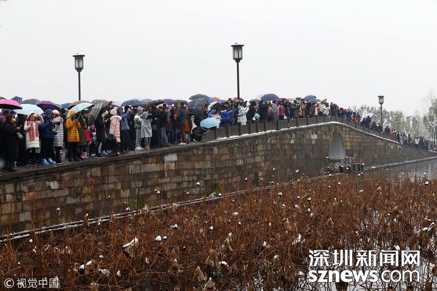 游客扎堆西湖斷橋已無“殘雪” 網(wǎng)友:人太多雪沒地方站