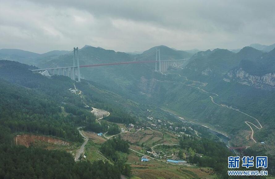 畢都高速公路北盤(pán)江大橋是杭瑞高速公路畢都段的控制性工程,位于貴州省和云南省交界處,由貴州省和云南省共建。該橋橋面至江面高差達(dá)565米,成為目前世界第一高橋。主橋?yàn)殇撹炝盒崩瓨?,主?20米,目前位居同類(lèi)型橋梁2016年12月29日正式通車(chē)。