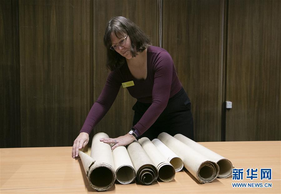 11月2日,在英國紐卡斯爾的泰恩—威爾檔案館,檔案管理員瑞秋·吉爾在介紹致遠艦設計圖紙。 新華社記者日前在紐卡斯爾泰恩—威爾檔案館查找北洋海軍史料時發(fā)現一套七張、檔案名為“中國巡洋艦舵機設計圖”的原始圖紙。塵封百年,甲午海戰(zhàn)中抗擊日艦后沉沒的清北洋海軍致遠艦部分原廠設計圖紙在其建造地——英國紐卡斯爾市的一家檔案館首次被發(fā)現,為打撈那段悲壯的歷史提供了重要參考。 新華社記者 韓巖 攝