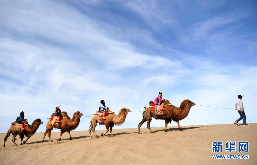 游客在敦煌鳴沙山騎駱駝(2017年5月3日攝)。 敦煌記錄歷史。開放的胸襟,曾讓這里成為古代絲綢之路上“華戎所交一都會”。 時隔千年,改革開放的春風吹入西北內(nèi)陸小城,敦煌再度成為中國對外開放的文化前沿。 新華社記者 陳斌 攝