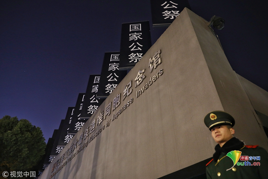 2018年12月12日晚,江蘇南京,侵華日軍南京大屠殺遇難同胞紀(jì)念館沿線道路莊嚴(yán)肅穆、安保和工作人員做好了準(zhǔn)備,迎接第五個(gè)南京大屠殺死難者國家公祭日。2018年是南京大屠殺慘案發(fā)生81周年,第五個(gè)南京大屠殺死難者國家公祭儀式將于12月13日舉行。圖片作者:尼克