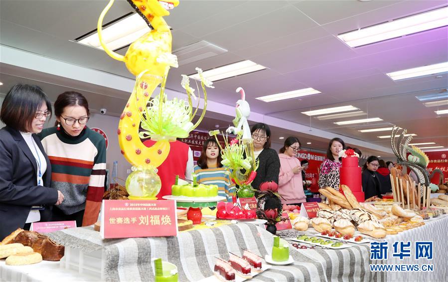 12月13日,參觀者在烘焙和糖藝成品展示現(xiàn)場參觀。 當(dāng)日,2018年中國技能大賽——上海市食品行業(yè)職業(yè)技能競賽(西式面點(diǎn)師項(xiàng)目)在上海環(huán)球港舉行?;顒?dòng)分為競賽和展示兩部分,近400名選手參加競賽部分比拼,最終進(jìn)入決賽的25名選手的作品在現(xiàn)場進(jìn)行展示評(píng)比。 新華社記者 方喆 攝