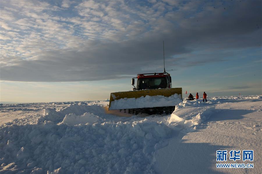 修路小組成員用雪地車裝備的鏟斗推平積雪(12月1日攝)。 搭載中國(guó)第35次南極科考隊(duì)的“雪龍”號(hào)極地考察船日前到達(dá)距離中山站44公里處的陸緣冰區(qū),準(zhǔn)備迎來(lái)本次南極科考首場(chǎng)攻堅(jiān)戰(zhàn)——物資卸運(yùn)。一支探冰小組隨即展開(kāi)海冰探路,以期盡快打通從“雪龍”號(hào)到中山站的冰上運(yùn)輸線,盡早啟動(dòng)冰上運(yùn)貨。 新華社記者 劉詩(shī)平 攝
