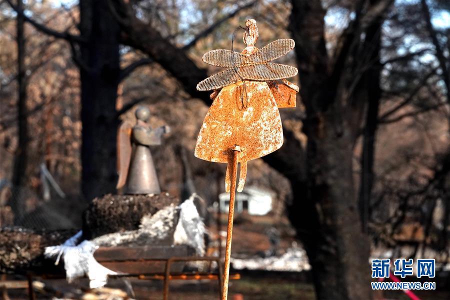 這是12月7日在美國加利福尼亞州比尤特縣天堂鎮(zhèn)拍攝的山火廢墟。