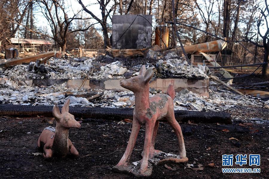 這是12月7日在美國(guó)加利福尼亞州比尤特縣天堂鎮(zhèn)拍攝的山火廢墟。 新華社記者吳曉凌攝