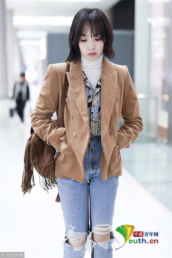 2018年12月16日,宋茜從上海機(jī)場飛往北京機(jī)場。她身穿短款薄外套,搭配破洞牛仔褲,要風(fēng)度不要溫度,一路低頭前行悶悶不樂似遇愁心事,到了北京之后她又裹起了厚圍巾,但依舊悶悶不樂。