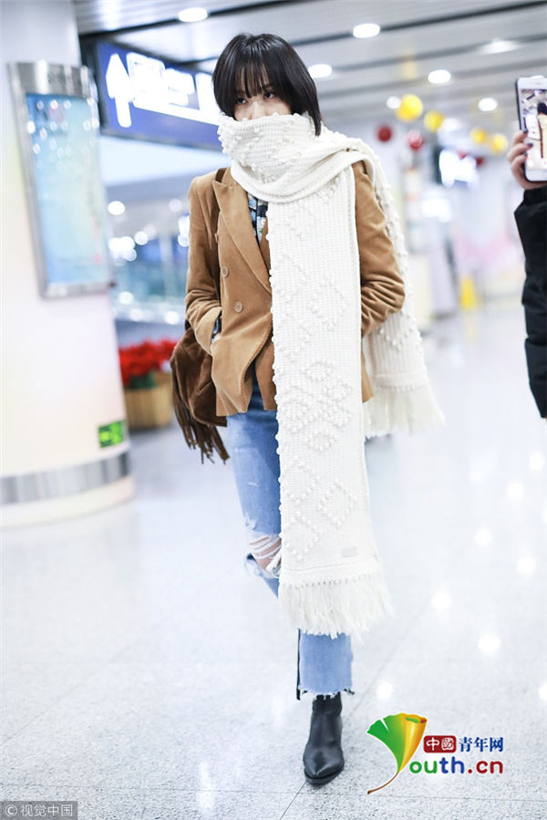 2018年12月16日,宋茜從上海機場飛往北京機場。她身穿短款薄外套,搭配破洞牛仔褲,要風(fēng)度不要溫度,一路低頭前行悶悶不樂似遇愁心事,到了北京之后她又裹起了厚圍巾,但依舊悶悶不樂。