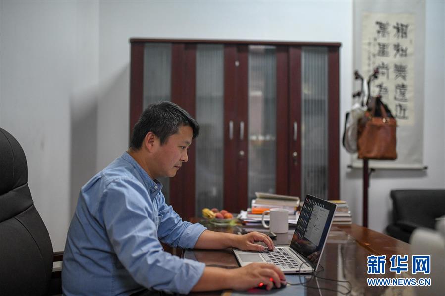 2018年4月12日,在埃及首都開(kāi)羅,泛阿網(wǎng)絡(luò)公司聯(lián)合創(chuàng)始人、中東北非總經(jīng)理馬強(qiáng)在辦公室工作。
