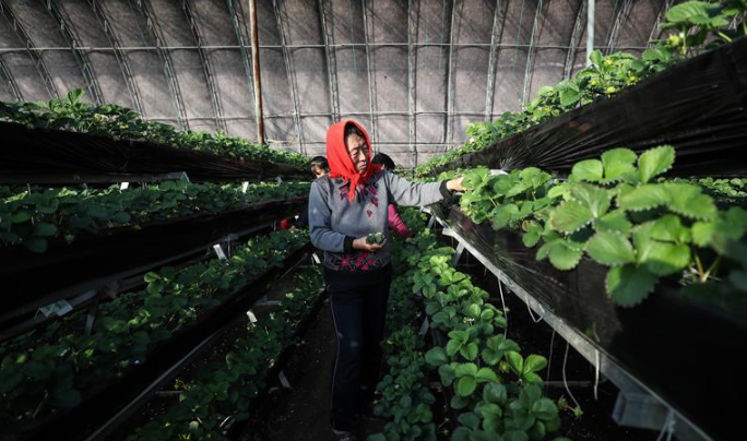 河北豐潤:大棚內的豐收場面