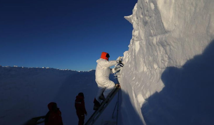 南極“白夜”采集雪坑樣品記