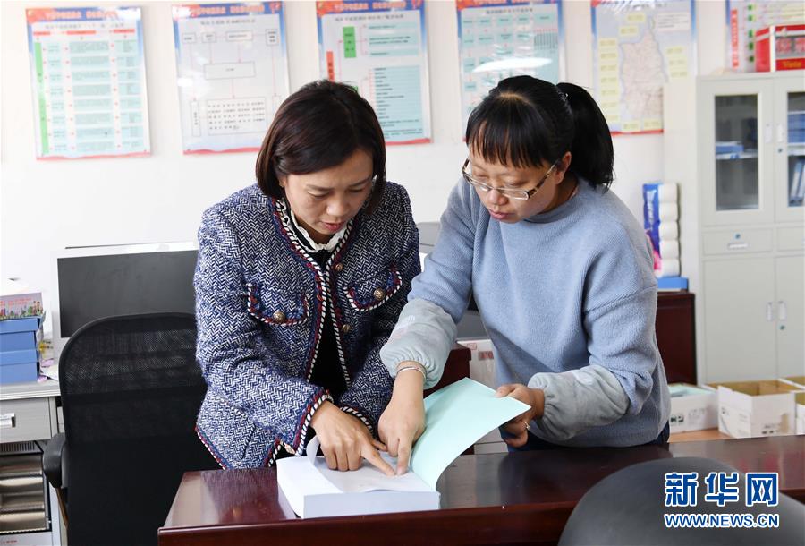 12月17日,陳應蘭(左)和同事核對貧困群眾資料。 新華社記者 楊宗友 攝