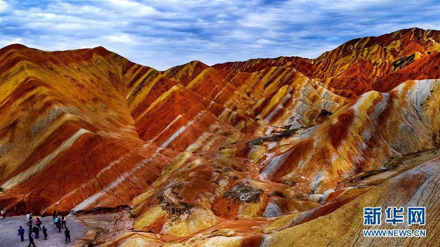 2018年9月5日,游人在張掖丹霞國家地質公園游覽。 大地之色,俯仰之間;壯美山河,是我的祖國。2018年,新華社記者操縱無人機“飛閱”華夏大地,在最美的時節(jié),定格下她的色彩斑斕。 新華社記者 陶明 攝