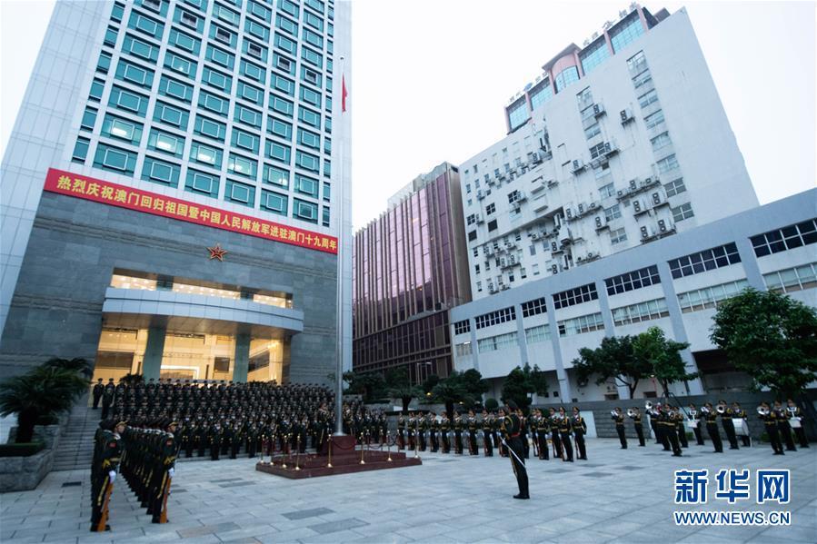 12月20日,中國人民解放軍駐澳門部隊在澳門新口岸營區(qū)舉行升國旗儀式,慶祝澳門回歸祖國暨中國人民解放軍進(jìn)駐澳門19周年。 新華社記者張金加攝