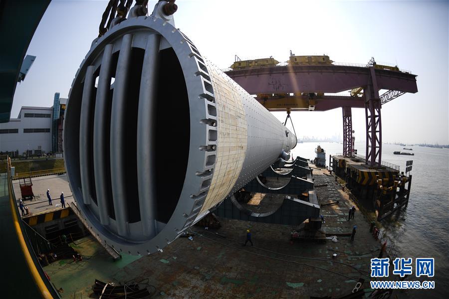 在江蘇鎮(zhèn)江,260萬噸/年沸騰床渣油鍛焊加氫反應(yīng)器正在進(jìn)行吊裝(4月28日攝)。 新華社記者李響攝