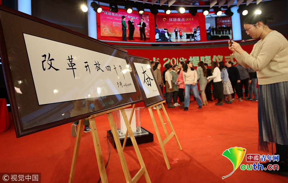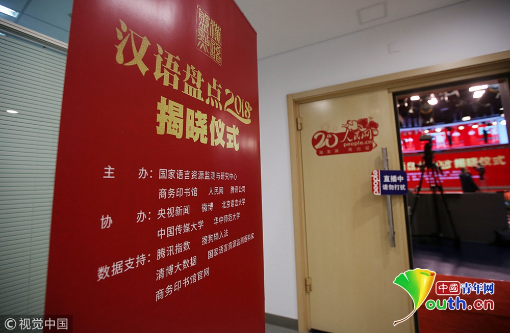 12月20日,國家語言資源監(jiān)測與研究中心、商務(wù)印書館、央視新聞等單位聯(lián)合舉辦的“漢語盤點(diǎn)2018”揭曉儀式在北京舉行。圖片來源:視覺中國