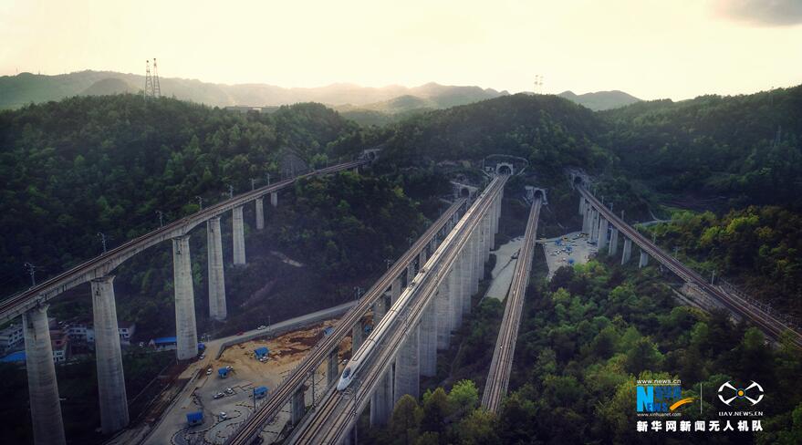 貴州省地處中國西南腹地,全省高原山地居多,因此高鐵建設(shè)的橋隧占比較高。在貴陽市烏當(dāng)區(qū)新添寨,高鐵滬昆線、貴廣客運(yùn)專線、貴開城際客運(yùn)專線的隧道和橋梁交織在一起,形成“五洞五橋”并行,形似“五龍出?!钡膲延^景象(3月29日攝)。新華網(wǎng)盧志佳攝