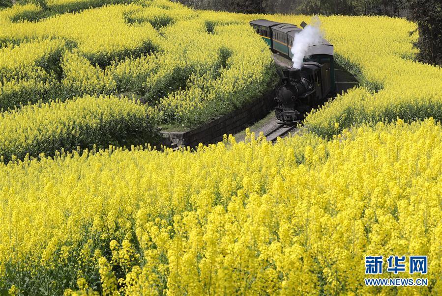 3月12日,在四川省犍為縣,一列嘉陽小火車在油菜花海中穿行。 在即將過去的2018年,各地?cái)z影師用鏡頭記錄下四季中國。大江南北,一幅幅色彩斑斕的美麗畫卷徐徐展開。 新華社記者 江宏景 攝