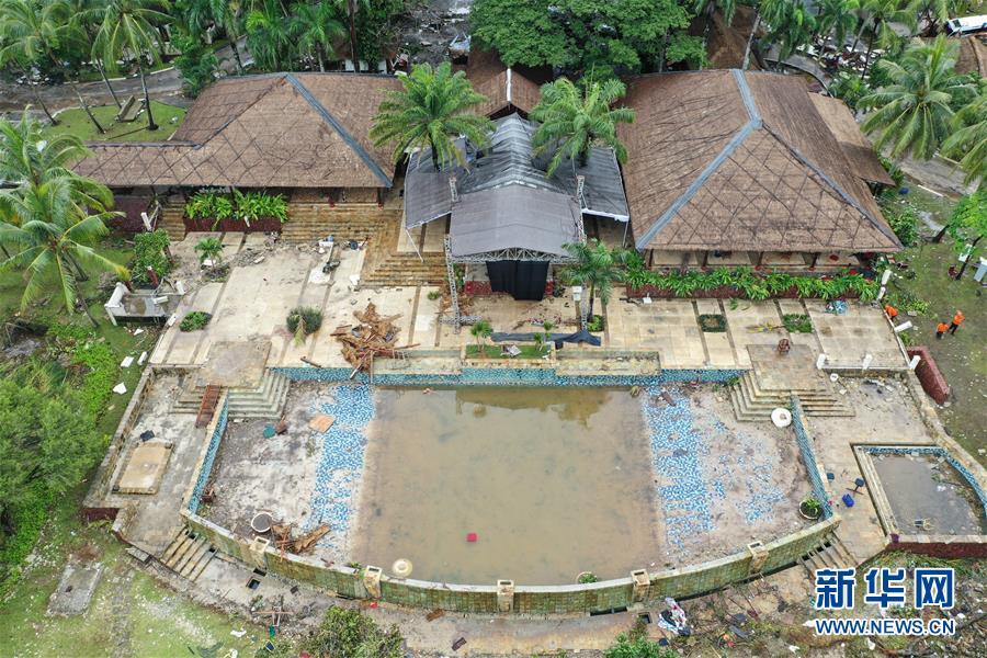 這是12月25日航拍的遭海嘯襲擊后的印度尼西亞萬丹省丹戎勒松度假村。印度尼西亞抗災署25日通報說,印尼西部巽他海峽22日晚發(fā)生的海嘯已造成429人遇難,另有超過1.6萬人撤離。搜救工作正在緊張進行。新華社記者 杜宇 攝