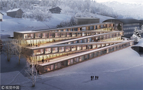 2018年5月30日訊,Bjarke Ingels Group ( BIG )將在瑞士新建一家酒店,成“之”字形的屋頂同時也是滑雪道。酒店占地 70000 平方英尺,由五個連續(xù)的“之”字形部分組成。在建筑外部,它們同時也是一條從屋頂通向地面的路徑。冬日里覆雪的屋頂就成為了雪道,它直通向鐘表匠小路( Watchmaker's Path )——這一通道是經(jīng)歷史上的制表要塞啟發(fā)而建——延伸了原有的滑雪區(qū)域。