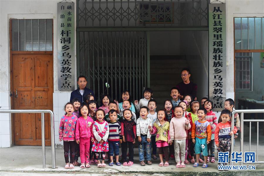 烏英教學(xué)點“一??鐑墒^(qū)”,目前有廣西籍學(xué)生18名,貴州籍學(xué)生9名,廣西貴州籍老師各1名。 烏英苗寨位于黔桂交界的大苗山深處,共有140戶,其中100戶屬廣西柳州市融水苗族自治縣桿洞鄉(xiāng)黨鳩村,40戶屬貴州省從江縣翠里瑤族壯族鄉(xiāng)南岑村。由于地處偏遠,山多地少,經(jīng)濟發(fā)展緩慢,目前整個苗寨還有76戶是貧困戶。 面對艱巨的脫貧任務(wù),當(dāng)?shù)攸h委政府在努力改善烏英苗寨公共基礎(chǔ)設(shè)施的同時,因地制宜,帶動群眾積極發(fā)展特色產(chǎn)業(yè)。從2017年11月至今的一年多時間,這里發(fā)生了很大改變:10戶村民新建了木樓,120多戶完成“三改”(改廁改廚改圈),1名貧困考生考上大學(xué),1戶購買新汽車,4對新人舉行了婚禮,寬帶網(wǎng)絡(luò)開始進入貧困戶家庭,苗寨修建了新的辦公大樓和戲臺,安裝了4盞太陽能路燈,購買了40多個新蘆笙,水果種植專業(yè)合作社2018年種植的百香果也開始有所收獲,18戶貧困戶進入脫貧公示階段…… 烏英苗寨600多名黔桂苗族群眾,正在用勤勞的手,拔窮根摘窮帽,一起創(chuàng)造美好的明天。