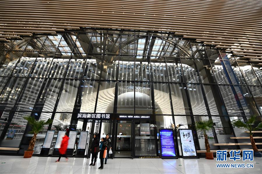 這是12月27日拍攝的天津?yàn)I海新區(qū)圖書館入口。 濱海新區(qū)圖書館位于天津?yàn)I海文化中心,2017年10月1日正式開館,設(shè)計(jì)立意為“濱海之眼”和“書山有路勤為徑”。圖書館現(xiàn)有藏書60多萬冊(cè),一年多來接待讀者約280萬人次,已成為濱海新區(qū)的文化“新地標(biāo)”。 新華社記者李然攝