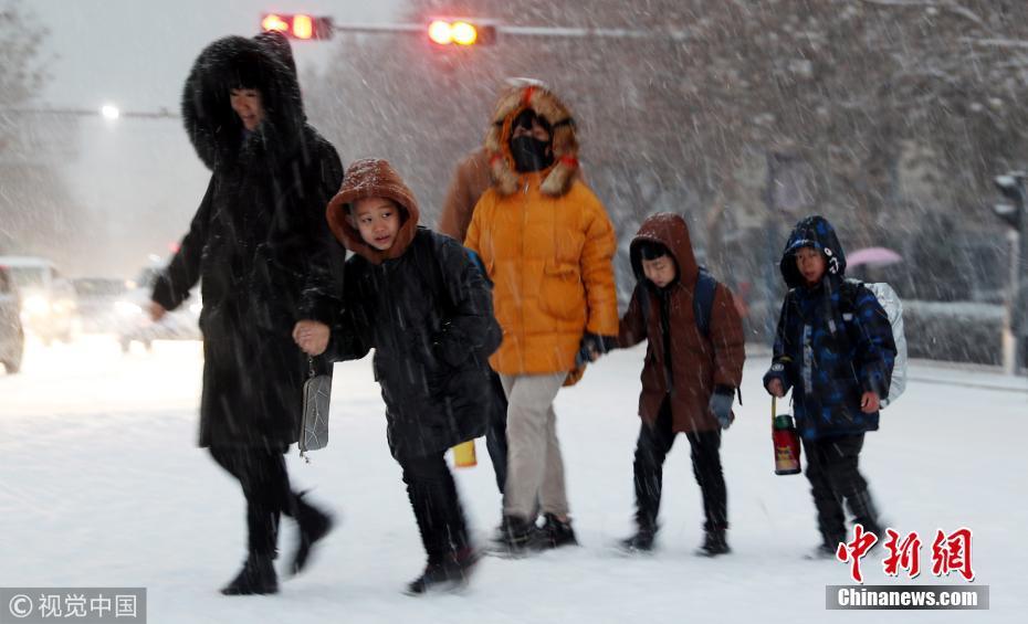此次是石家莊入冬以來(lái)出現(xiàn)的第二次降雪天氣,對(duì)交通安全帶來(lái)影響。圖片來(lái)源:視覺中國(guó)