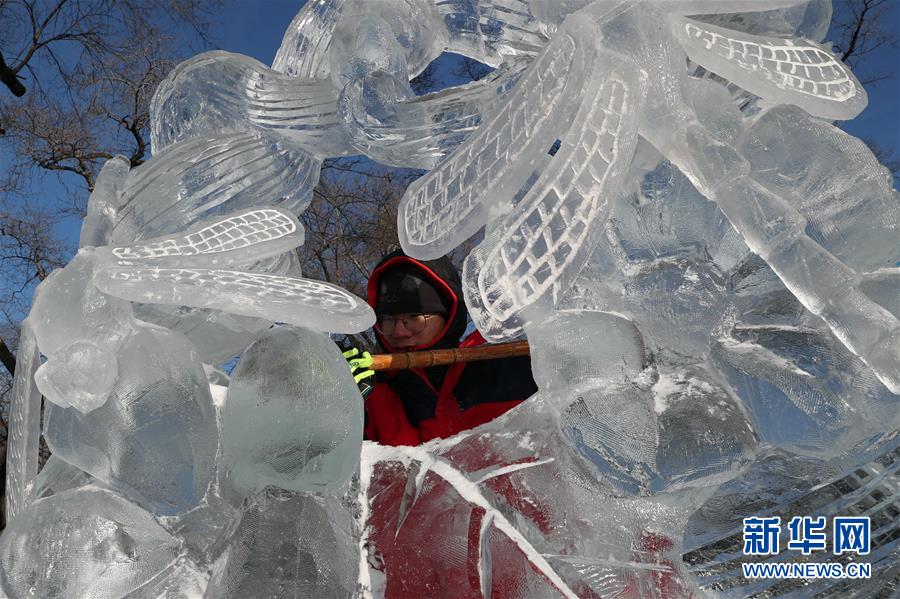 12月27日,選手在比賽中完善冰雕作品。 當(dāng)日,第十六屆黑龍江省大學(xué)生冰雕藝術(shù)設(shè)計(jì)創(chuàng)作大賽在哈爾濱兆麟公園落下帷幕,全省高校共有99支隊(duì)伍參賽。 新華社記者曹霽陽(yáng)攝