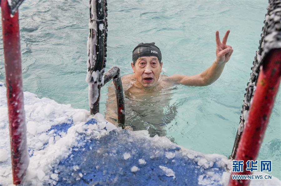 當(dāng)日,新疆烏魯木齊戶外氣溫接近零下20攝氏度,許多冬泳愛好者不懼嚴寒,來到烏魯木齊紅山游泳中心戶外泳池進行冬泳運動,鍛煉身體,磨練意志。