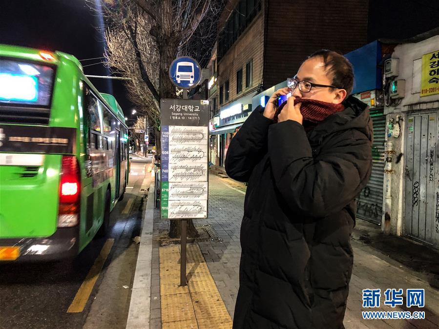 12月28日,一名行人在韓國首爾西江大學附近的一個公交站打電話。據(jù)韓國氣象部門28日消息,全國各地當天迎來強寒潮,首爾地區(qū)體感溫度達零下19.3攝氏度,中部地區(qū)和南部地區(qū)已發(fā)布低溫預警。新華社記者 王婧嬙 攝
