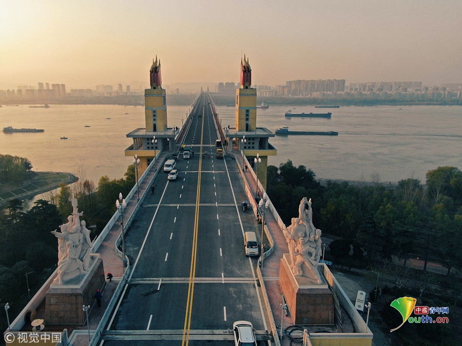 50歲南京長江大橋恢復(fù)通車再現(xiàn)車水馬龍