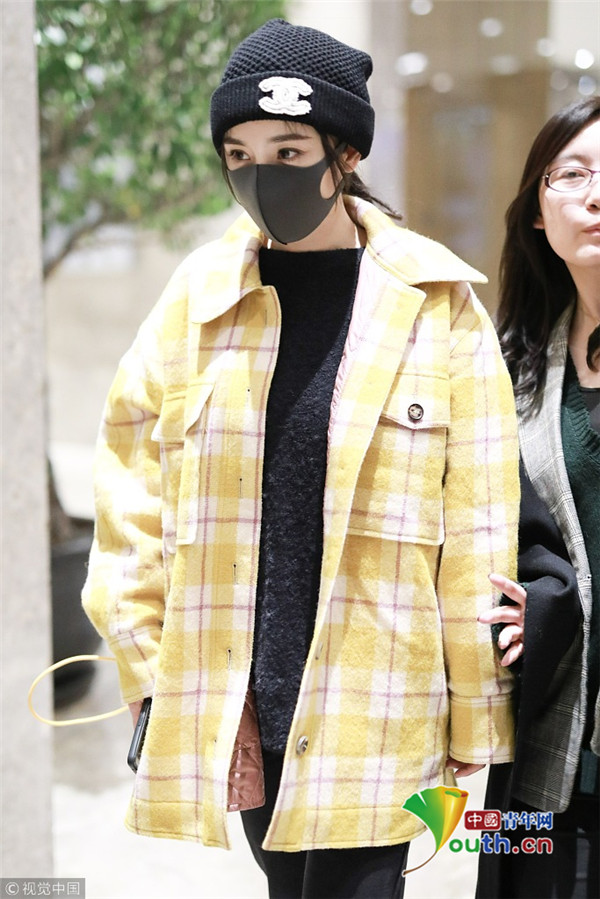 2018年1月6日,上海,楊冪現(xiàn)身某酒店。她戴著帽子口罩,身穿黑色套裝,而外面搭配的奶黃格子外套卻瞬間減齡,明亮又惹眼,無懼寒冬露著纖細(xì)腳踝,依舊是那個很會穿搭的大冪冪。