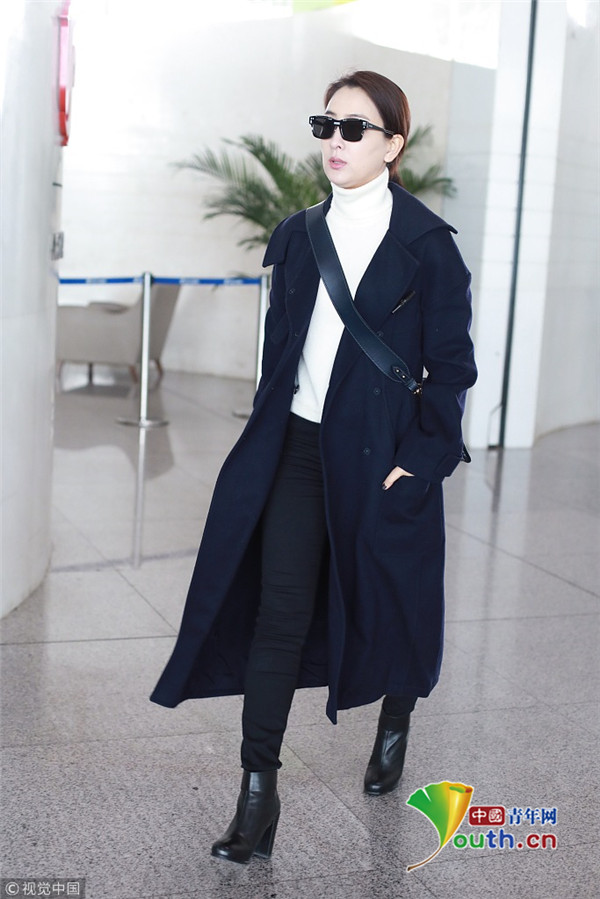 2019年1月7日,北京,馬蘇現(xiàn)身機(jī)場。她身穿黑色到腳大衣霸氣外露,架黑超涂紅唇似帥氣“女特工”。