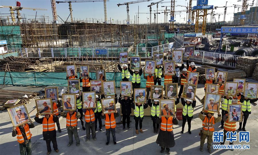 1月9日,中建一局北京城市副中心周轉房項目工地施工單位的職工在展示自己的照片。 當日,由北京市總工會主辦的工會“兩節(jié)”送溫暖活動之一的“把微笑帶回家,為最美勞動者點贊”大型公益活動,在中建一局北京城市副中心職工周轉房項目工地舉行。眾多勞動者獲贈“微笑”肖像照和保溫壺、毛巾等新春“大福包”。 新華社記者 李欣 攝