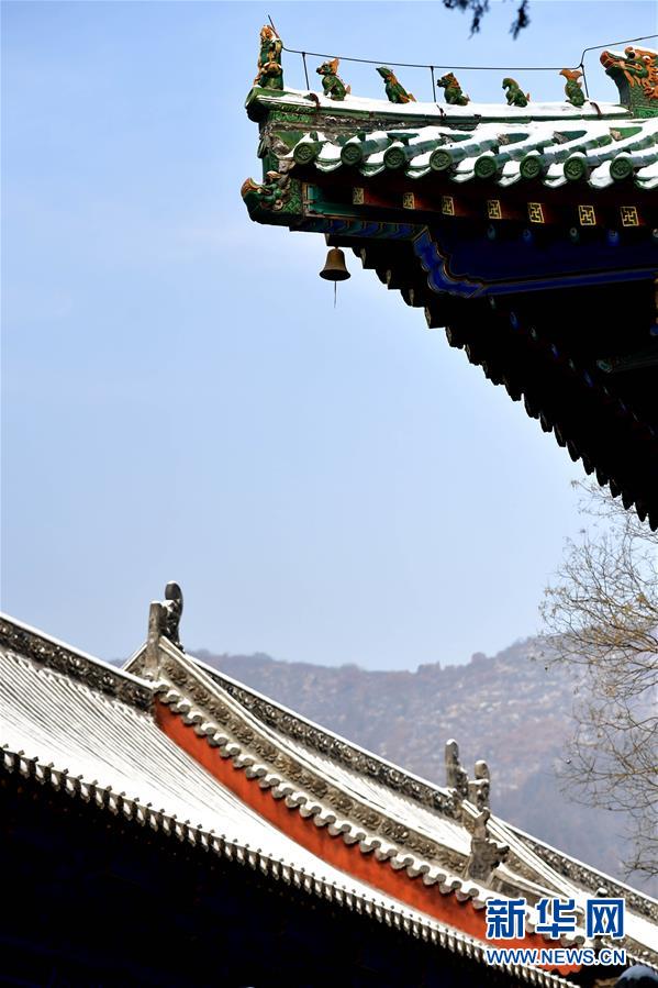 1月10日無人機拍攝的少林寺一景。當(dāng)日,雪后初霽,河南登封少林寺分外秀美。 新華社記者 馮大鵬 攝