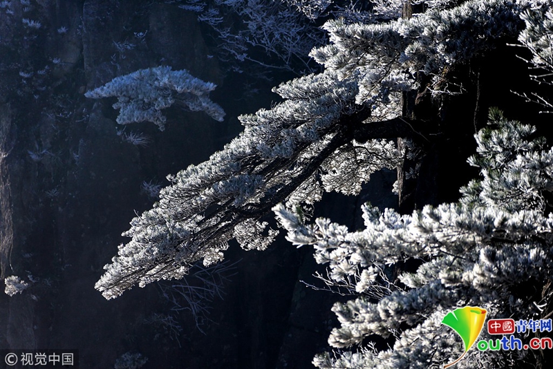 安徽黃山出現(xiàn)了四月陽(yáng)春罕見(jiàn)的霧凇奇觀。
