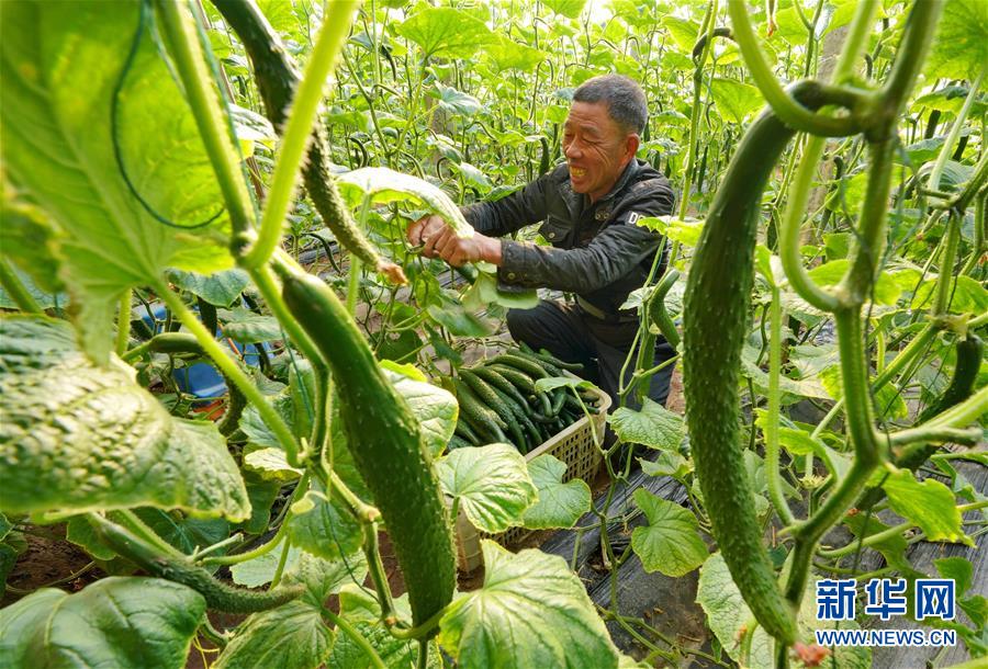 1月10日,唐山海港經(jīng)濟開發(fā)區(qū)王灘鎮(zhèn)東高村農(nóng)民在大棚內(nèi)采摘黃瓜。 河北省唐山海港經(jīng)濟開發(fā)區(qū)采取“合作社+產(chǎn)業(yè)基地+農(nóng)戶”模式,扶持當?shù)胤N植戶規(guī)?;⒐叩忍厣a(chǎn)業(yè)生產(chǎn)基地,帶動農(nóng)民增收致富。 新華社記者楊世堯攝