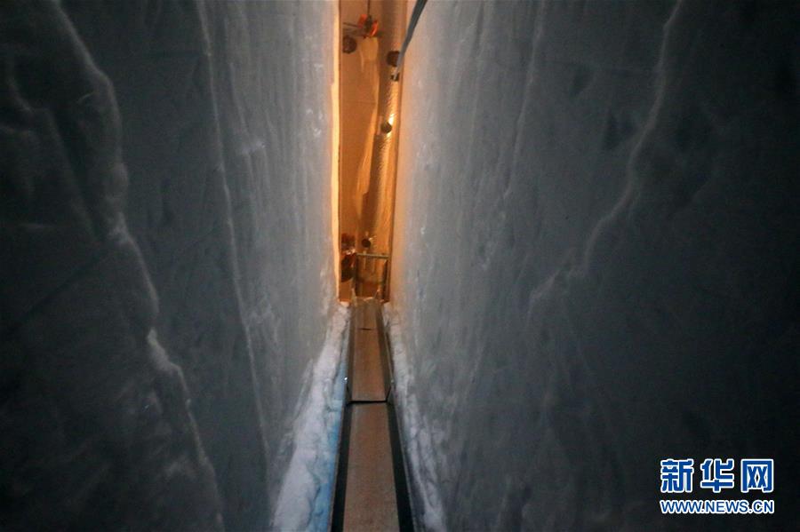 這是深冰芯房內(nèi)10米深的鉆探槽(1月12日攝)。 新華社記者 劉詩平 攝