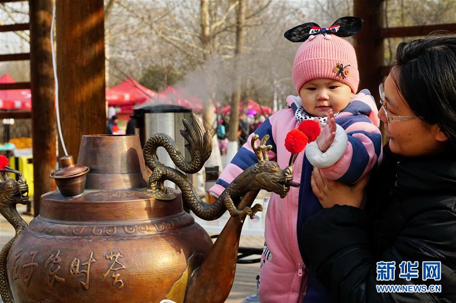 1月12日,游客在年貨大集上觀看民俗展覽。