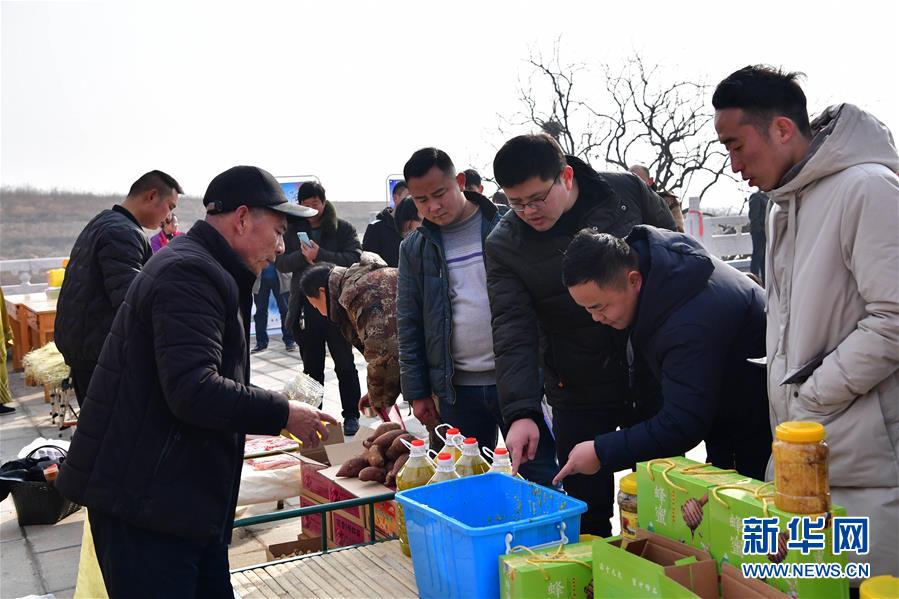 1月13日,游客和附近村民在展銷活動(dòng)上選購?fù)撂禺a(chǎn)。 新華社記者 馮大鵬 攝