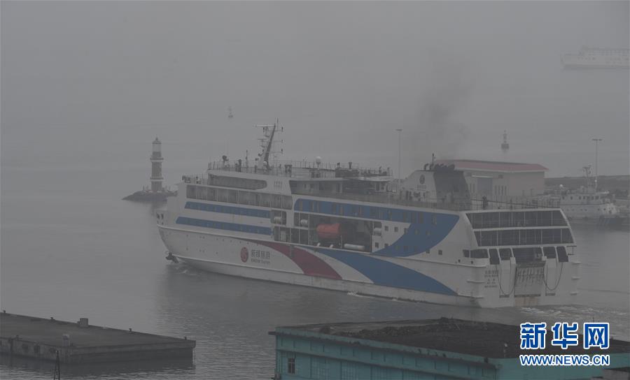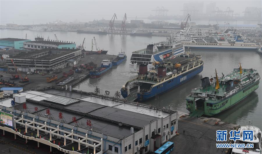 1月13日,一艘客滾船從??谛阌⒏垴偝觥? 新華社記者楊冠宇攝