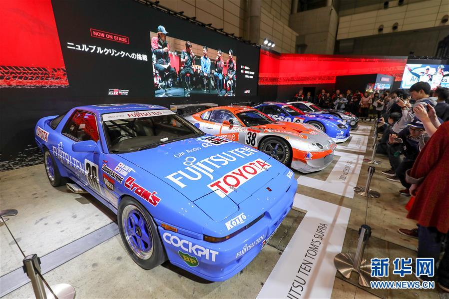 1月13日,在日本千葉東京汽車沙龍現場,豐田公司展出的歷代賽車吸引大批觀眾。 新華社記者 馬曹冉 攝