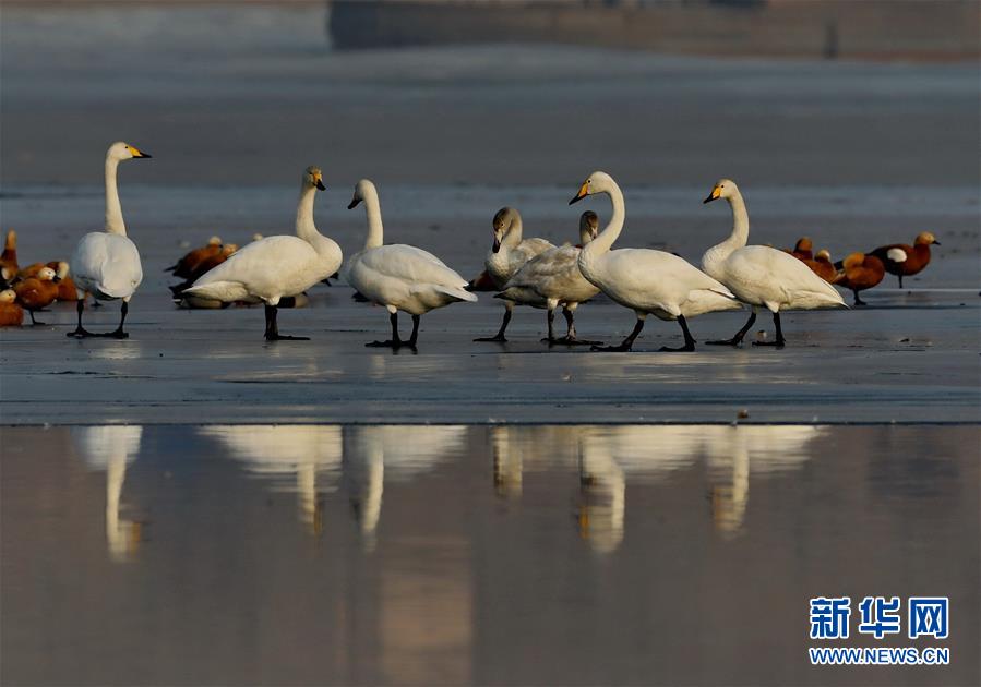 1月13日,天鵝等水鳥在張家口市宣化區(qū)洋河水庫休憩。 近年來,河北省張家口市宣化區(qū)立足京津冀生態(tài)涵養(yǎng)區(qū)的功能定位,不斷加大環(huán)境治理和生態(tài)功能修復(fù)力度,使洋河水庫及周邊濕地成為天鵝、大雁、野鴨、灰鶴等多種鳥類南北遷徙中的棲息地。 新華社記者楊世堯攝