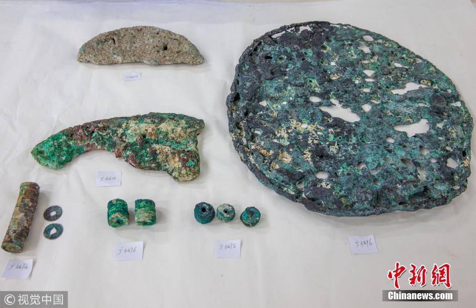 廣東省博物館文物保護(hù)科技中心出水文物保護(hù)實驗室里,修復(fù)后的南澳一號出水明代銅錢和銅料。正是因為銅料的發(fā)現(xiàn),引起了南澳一號是走私船的猜測。譚慶駒 攝 圖片來源:視覺中國