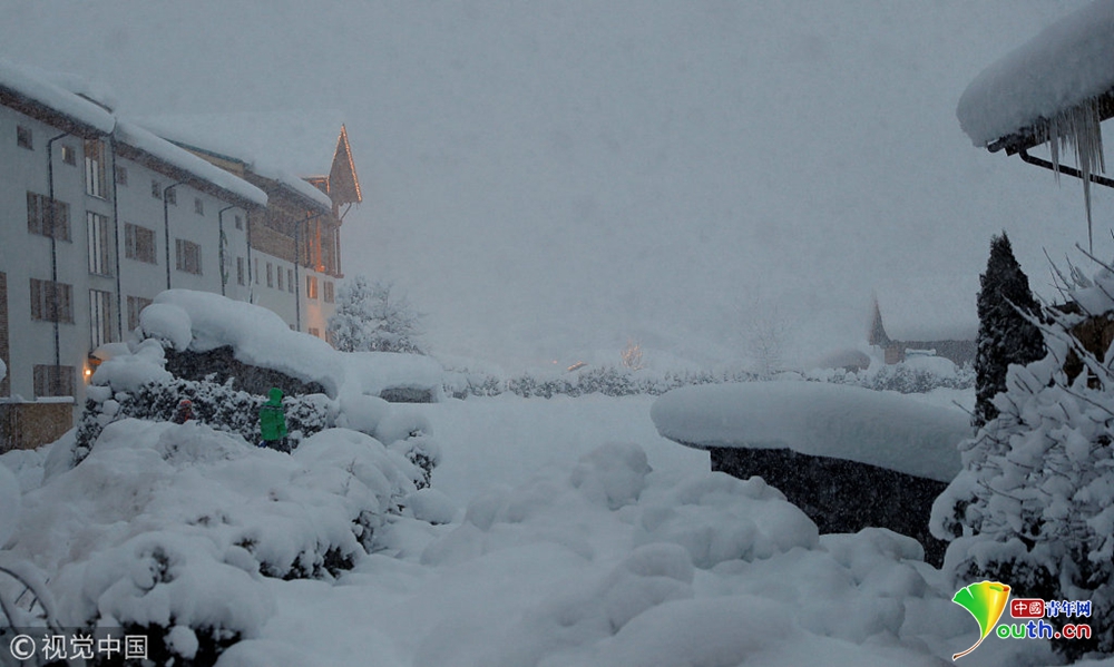 奧地利暴風(fēng)雪持續(xù) 公交車站被積雪掩埋