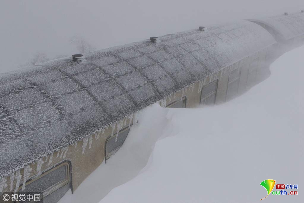 奧地利暴風(fēng)雪持續(xù) 公交車(chē)站被積雪掩埋