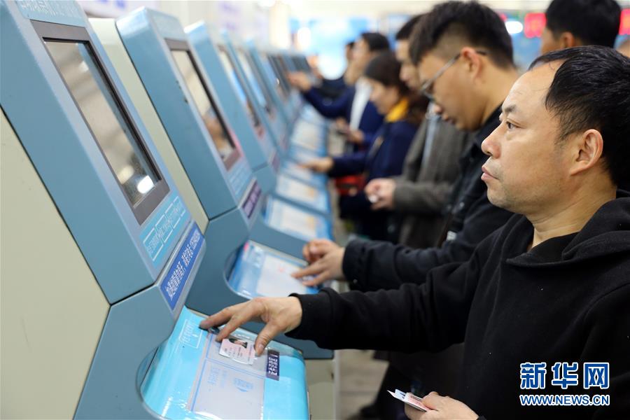 1月15日,旅客在廣州火車站售票大廳外臨時(shí)搭建的互聯(lián)網(wǎng)購票取票大棚內(nèi)的自助終端上取票。 為適應(yīng)互聯(lián)網(wǎng)購票旅客比重持續(xù)上升趨勢(shì),廣州火車站在籌備2019年春運(yùn)票務(wù)業(yè)務(wù)時(shí),優(yōu)化互聯(lián)網(wǎng)購票取票和退改簽業(yè)務(wù)辦理流程設(shè)計(jì),提升效率,方便旅客出行。 新華社記者劉大偉攝