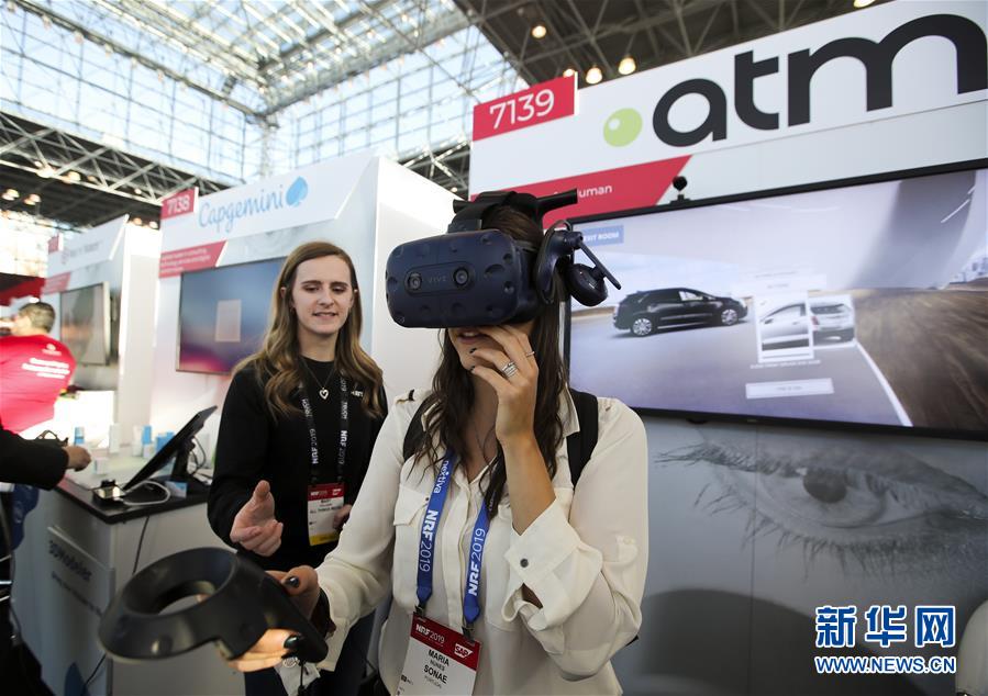 1月14日,在美國紐約舉行的全國零售商聯(lián)合會年度大會的“創(chuàng)新實(shí)驗(yàn)室”展廳,參觀者嘗試一款用虛擬現(xiàn)實(shí)技術(shù)實(shí)現(xiàn)遠(yuǎn)程選車的應(yīng)用。 美國全國零售商聯(lián)合會年度大會于1月13日至15日在紐約舉行,許多來自世界各地的展商帶來使用新技術(shù)開發(fā)出的軟硬件產(chǎn)品,向觀眾展示未來零售業(yè)的新愿景。 新華社記者 王迎 攝
