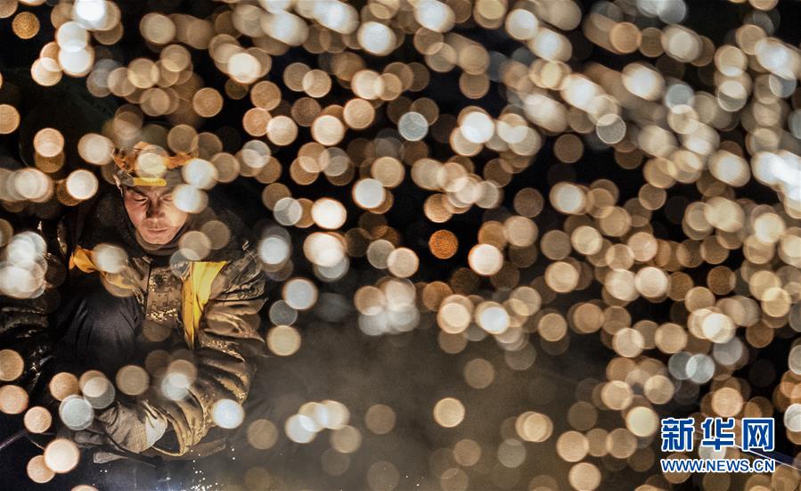 1月15日凌晨,中鐵十一局施工人員在西安站改現(xiàn)場(chǎng)切割鋼軌。新華社記者陶明攝