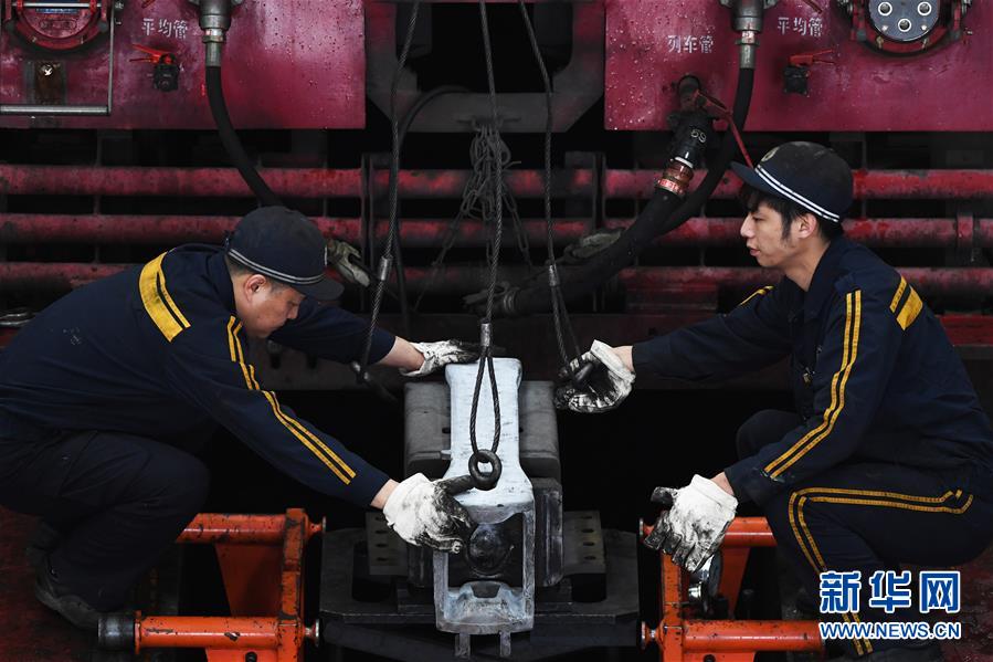 1月16日,重慶機(jī)務(wù)段職工在對(duì)機(jī)車車鉤進(jìn)行檢修。 臨近春運(yùn),為確保春運(yùn)旅客和貨物列車運(yùn)輸安全,中國(guó)鐵路成都局集團(tuán)有限公司重慶機(jī)務(wù)段對(duì)全段機(jī)車進(jìn)行專項(xiàng)檢查、整修,為即將到來的春運(yùn)做準(zhǔn)備。 新華社記者王全超攝